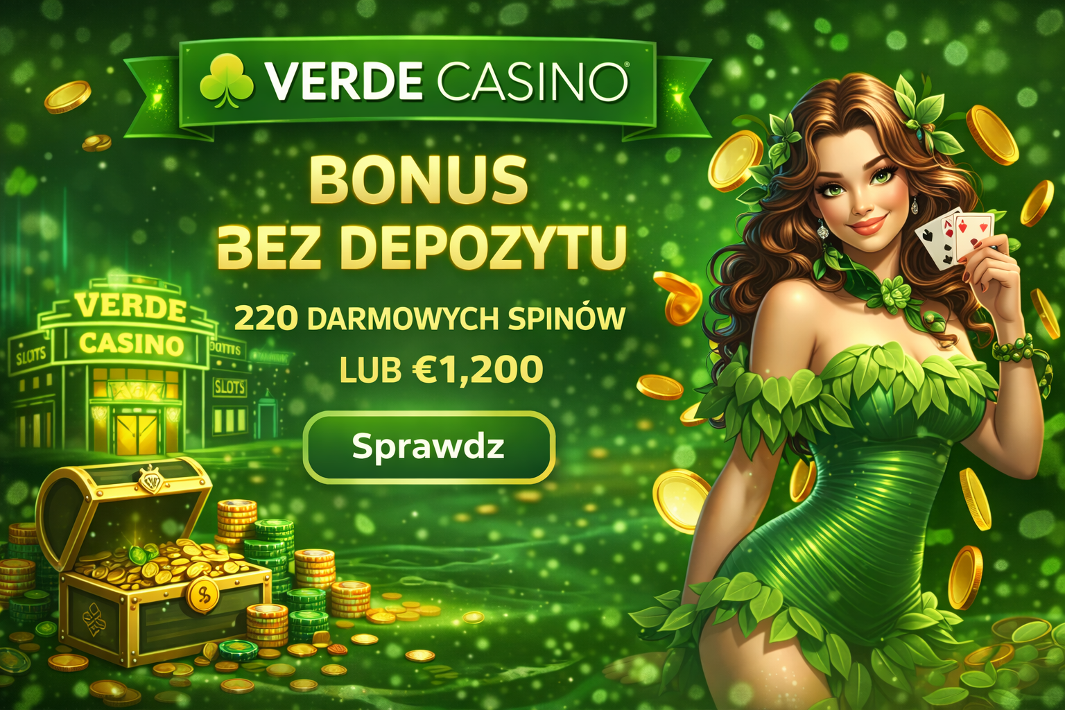 Verde Casino bonus bez depozytu 2026 to realna szansa na start bez wpłaty. Dla graczy z Polski przygotowano wybór między 50 darmowymi spinami a €1,200 na saldo bonusowe. Warunek obrotu to tylko x3, co wyróżnia ofertę na tle rynku. Poniżej analizujemy szczegóły, zasady i opłacalność obu opcji.